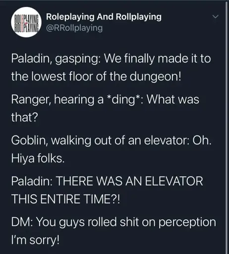 Nikls94@lemmy.worldEnglish · 11 months agoWhen the Druid crits her stealth rolllemmy.worldimagemessage-square0linkfedilinkarrow-up11arrow-down10
