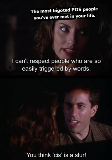 I know youre just being a petty shithead cause you think CIS is a slur or whatever but I like to make the world less shithead petty, more smart people funny petty with a point/lesson
