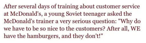 Customer service was part of a social contract. “You make me feel important, and I will spend more money at your establishment.”