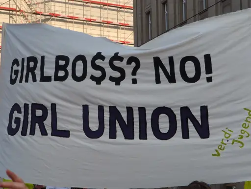 The author is implying a message to empower women to unionize. Not including men in a message does not mean men can’t or shouldn’t unionize.