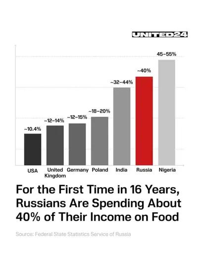 suspicious_hyperlink@lemmy.today to Europe@feddit.orgEnglish · 6 days agoRussians spend ~40% of income on food, highest level in 16 yearslemmy.todayimagemessage-square4linkfedilinkarrow-up13arrow-down10