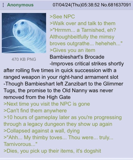 Well you might wanna know that you can totally ignore all the lore and still make it through the entire game. Like even the basic lore isn’t just given to you in dialogue; you have to purposely look for it in item descriptions and in-world environmental storytelling.