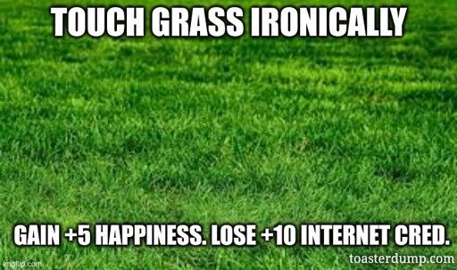 ToasterBotnet - Productivity and Memes@piefed.social to Funny@sh.itjust.worksEnglish · 12 days agoTouch Grassmedia.piefed.socialimagemessage-square18linkfedilinkarrow-up1189arrow-down14
