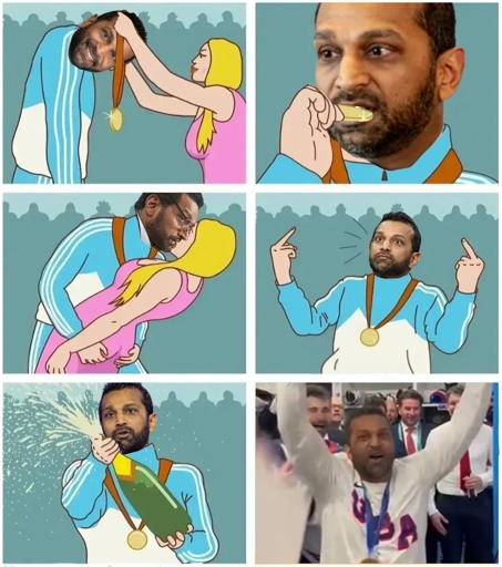 My theory is, I saw one of the USA team members say representing the USA right now has brought up conflicting feelings for him, which riled the orange idiot up, so I figure they sent old Patel over there to send a signal and intimidate the olympian, and also warn him not to have any more public outbursts, “or else”.