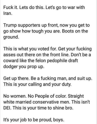 You mean the hypocrisy of them not suiting up to personally execute their holy war?