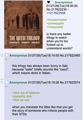 kali_fornication@lemmy.world to Greentext@sh.itjust.works · 2 months agoAnon recommends some movieslemmy.worldimagemessage-square3linkfedilinkarrow-up16arrow-down10