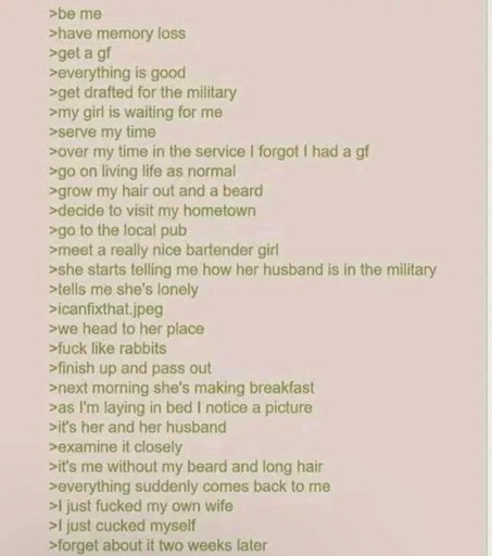 arrow-up16arrow-down1imageAnon joins the armyslrpnk.netTrack_Shovel@slrpnk.net to Greentext@sh.itjust.worksEnglish · 2 months agomessage-square7linkfedilink
