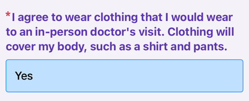 This is presumably a form for an e-visit. It’s to prevent people from exposing themselves to the provider beyond medical necessity.