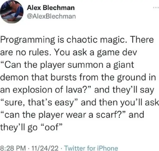 It’s weird to me that programming practice has changed that much in 20 years. That’s still closer to today than to Dennis Richie doing his thing.