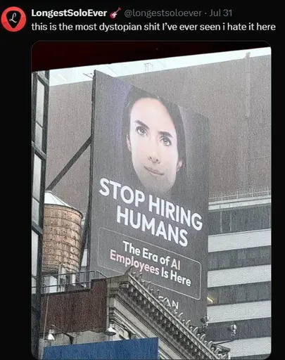 That 2nd picture really hits. You have a person sitting on a curb in a defeated posture, invoking images of someone who is down on their luck possibly unable to find work, while behind them is this ad featuring a blank almost soulless face depicting an “employee,” who presumably is the reason the curb sitter cannot find work, being praised for not ever needing or wanting work/life balance (you know, things like sleeping or not working)