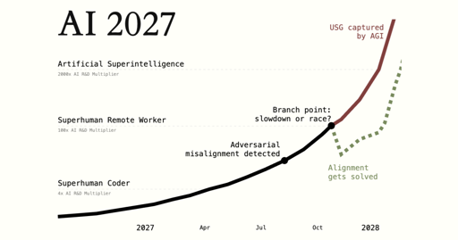 Psychopaths/Sociopaths. The politics of power are hinted at several times, then ignored. Superhuman AI concentrates power, first to our psychopaths then to itself. This is inevitable as no training or alignment can stop something that can think for itself. It is preposterous to think any safe guardrails can be applied. If we make a thinking machine, it will think for itself. The maximum power principle and overwhelming first mover advantage will guide any system to this. To what end, no one can or will know. Complex societies can’t grow and flourish without non-zero sum, altruistic community minded behaviour, but they will be kept as useful pets, or conflict crashes everything. Weird how the safe version suddenly avoid human and artificial psychopathy with a hand wave.