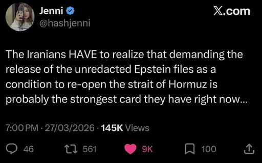 While I have no love for the Ayatollah and the IRGC, the US and Israel are the unprovoked aggressors in this conflict, and I look forward to their defeat and inevitable retreat from this war. I just hope that they are made to pay for the death and destruction they have caused over the past month.