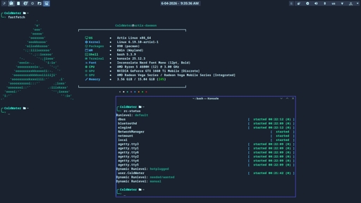 I ran Artix for a few days but ran into audio server issues. The issue was that there wasn’t an audio server installed so I had not sounds at all. I managed to get everything working after some trial and error. As expected, most of the online help is written with systemd in mind. A little while later I installed another application which installed alsa as a dependency which broke my audio again. I went back to EndeavourOS after that.