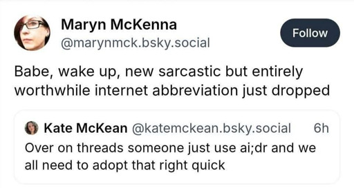 idk posting “ai;dr” as a reply is not functionally different from posting “ai” other than needing three more characters to type.