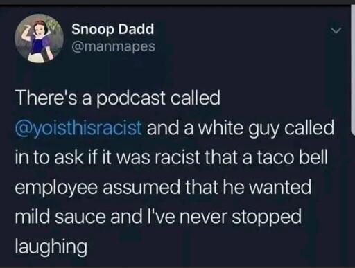 At a Indian restaurant, the waiter said, “We have regular and spicy… And Indian spicy.” Then he goes, “I usually don’t offer Indian spicy to everybody”. I’m brown, and I was given special treatment. But honestly I think I broke his heart when I asked for regular because he thought I could hang.