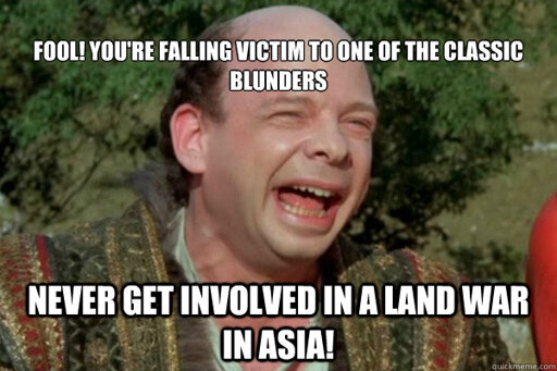 Or Korea, or Vietnam. Actually by now Ukraine seems more of a never invade Russia in winter blunder, made by Russia itself.