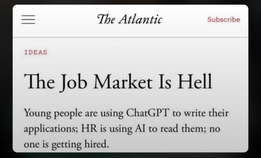 If I go on LinkedIn, every job listing says “over 100 people clicked apply”. I’ve done ~60 applications through various places and heard back from only 1, which proceeded to ghost me. Any of my frends that have found one did ~500, and not even at a livable wage so they’re still living with their parents. Every employer says their inbox gets so filled with applicants that they admit they have to resort to some poor heuristic (like applying in the first hour or having a ton of connections on LinkedIn). I’ve heard employers of service jobs are getting tons of overqualified candidates as runoff. I’ve shown my resume to people I know with multiple decades of experience in the field I want to work in and they tell my my resume is good. Of those that employ, they don’t have a position for me to fill but tell me if they did they’d hire me.