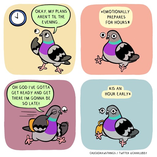 minus-squareJennaR8r@lemmy.dbzer0.comlinkfedilinkarrow-up2·3 days agoI’m gonna go stalk through your profile to find out if you’re really a pigeon or not. BRB…