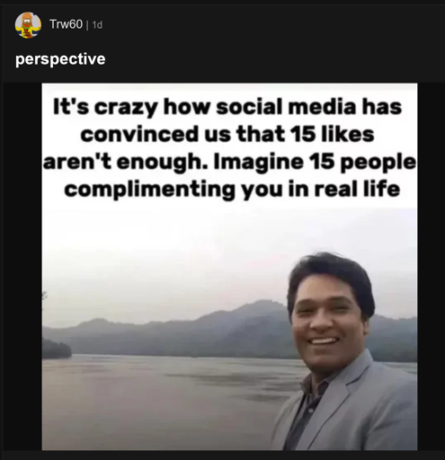 pelespirit@sh.itjust.worksM to People Twitter@sh.itjust.works · 10 days agoI think about this a lot. Even if a person "only" got 300 views, imagine those 300 people in front of you staring at you.sh.itjust.worksimagemessage-square102linkfedilinkarrow-up11.11Karrow-down17