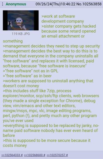 My last boss got rid of the pfSense routers because “open source is not secure”. I argued that pfSense has been vetted over and over and over again. Nope. “Everyone can see the source code.” That’s the fucking point!