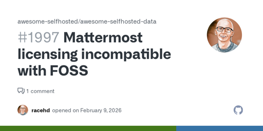 vegetaaaaaaa@lemmy.world to Selfhosted@lemmy.worldEnglish · 18 days agoMattermost is no longer Open-Sourcegithub.comexternal-linkmessage-square4linkfedilinkarrow-up11arrow-down10