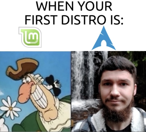 Waffelson@lemmy.world to linuxmemes@lemmy.world · 10 months agoWhich distribution should I recommend to beginners to scare them?lemmy.worldimagemessage-square0linkfedilinkarrow-up11arrow-down10