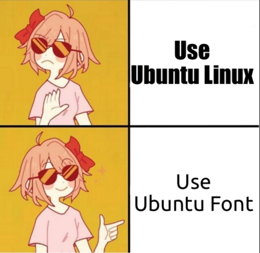 Waffelson@lemmy.world to linuxmemes@lemmy.world · 9 months agoYour favorite font for terminal and GTK/QT apps?lemmy.worldimagemessage-square0linkfedilinkarrow-up11arrow-down10