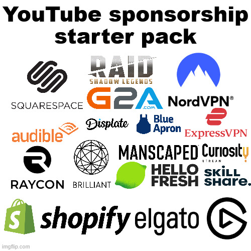 arrow-up11arrow-down1imageYouTube sponsorship starter packlemmy.mlcm0002@lemmy.cafe to Memes@sopuli.xyzEnglish · 2 months agomessage-square0linkfedilink