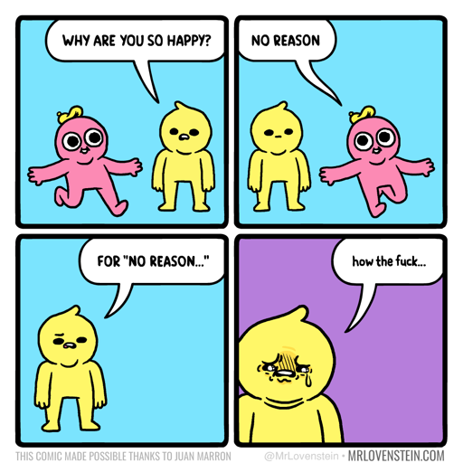arrow-up11arrow-down1imageWhy are you so happy?plus-squarelemmy.worldgigachad@sh.itjust.worksM to Mr. Lovenstein@sh.itjust.worksEnglish · 9 months agomessage-square0linkfedilink