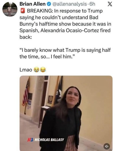 ickplant@lemmy.world to Political Memes@lemmy.world · 10 days agoAOC is a national treasure lemmy.worldimagemessage-square0linkfedilinkarrow-up11arrow-down10