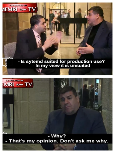 renzev@lemmy.world to linuxmemes@lemmy.worldEnglish · 1 year agoAverage systemd debatelemmy.worldimagemessage-square2linkfedilinkarrow-up11arrow-down10