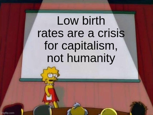 And I don’t want to hear about young people supporting aging populations. That’s a man-made problem that has solutions. Just not the kind of solutions capitalists can abide. (and if you think about it, it’s a temporary issue anyway).